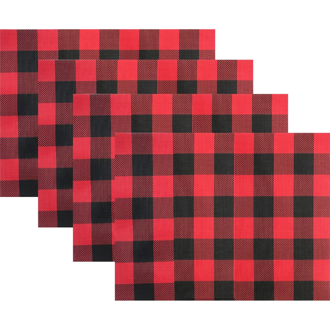 Featured with holiday check, the Freeport Check Woven Vinyl Red and Black 13 in. x 18 in. Placemat 4 pc. Set is perfect for your holiday dining table. It can be easily rolled for convenient storage. Very easy to clean. Model: 33676.