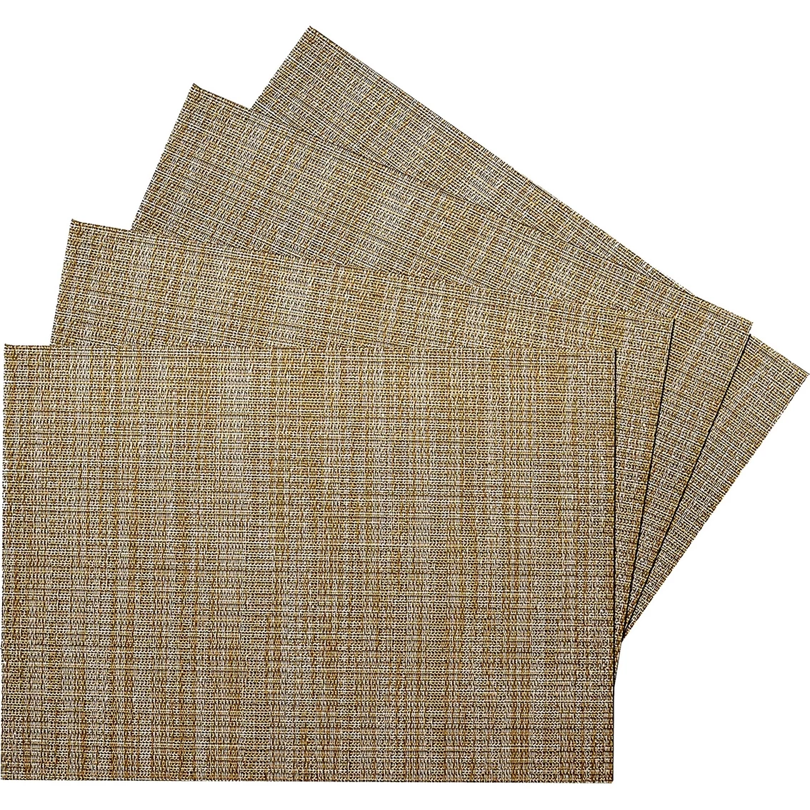 These luxurious Benson Mills Meridiem Metallic Woven Placemats are the perfect addition to your dinner table. The placemats feature a long lasting and durable vinyl material that will keep these placemats busy for breakfast, lunch and dinner. They’re inexpensive, elegant, long lasting and very easy to clean. Wipe clean with a damp cloth and they will be ready to use again. Comes in a set of four. Model: 20276.