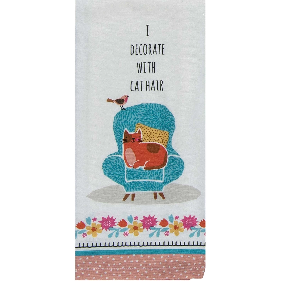 Do you decorate with cat hair? This tea towel from Kay Dee Designs features a cat perched on its throne like a royal highness! The floral border adds more color to make it purrfect! It has a loop for displaying and works great for drying dishes and glassware. Model: R3828.