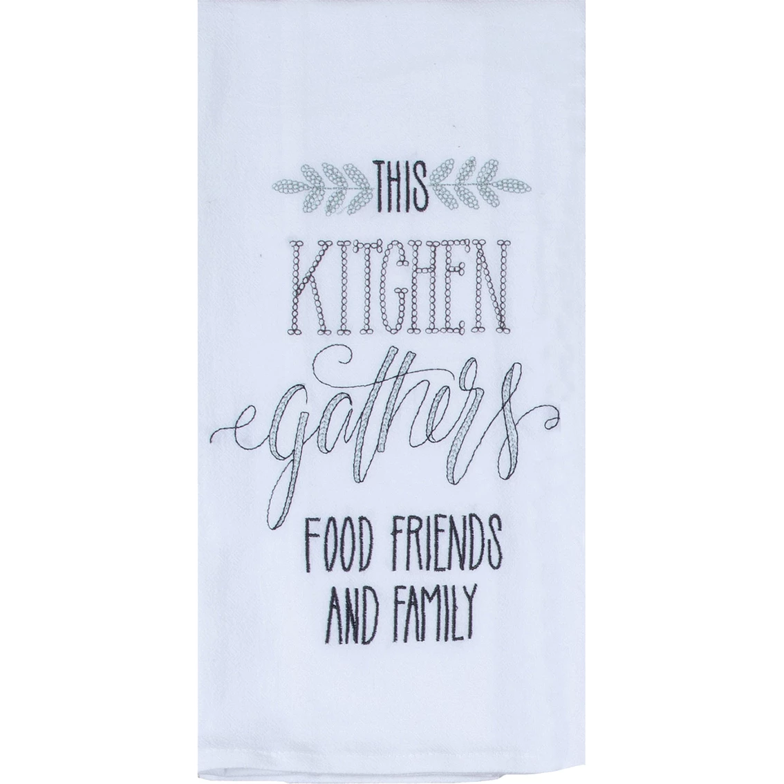 This Kay Dee Designs Modern Farmhouse This Kitchen Embroidered Flour Sack Towel features a soft gray palette that is perfect for today’s home decor. The florals and sentiments make this collection a perfect gift. The towel is lint-free and crinkle textured to create extra surface area for maximum absorbency. The towel features a sewn in loop for displaying and is 100% cotton and machine washable. Model: A8624.
