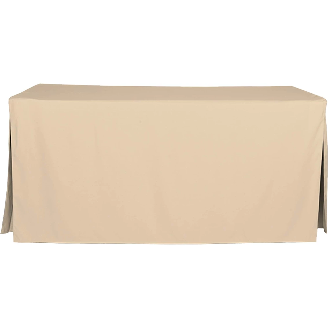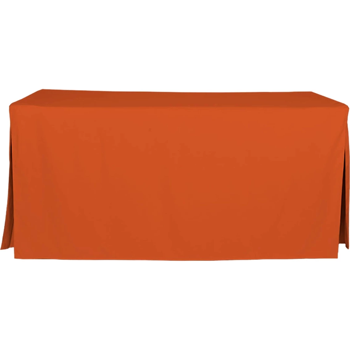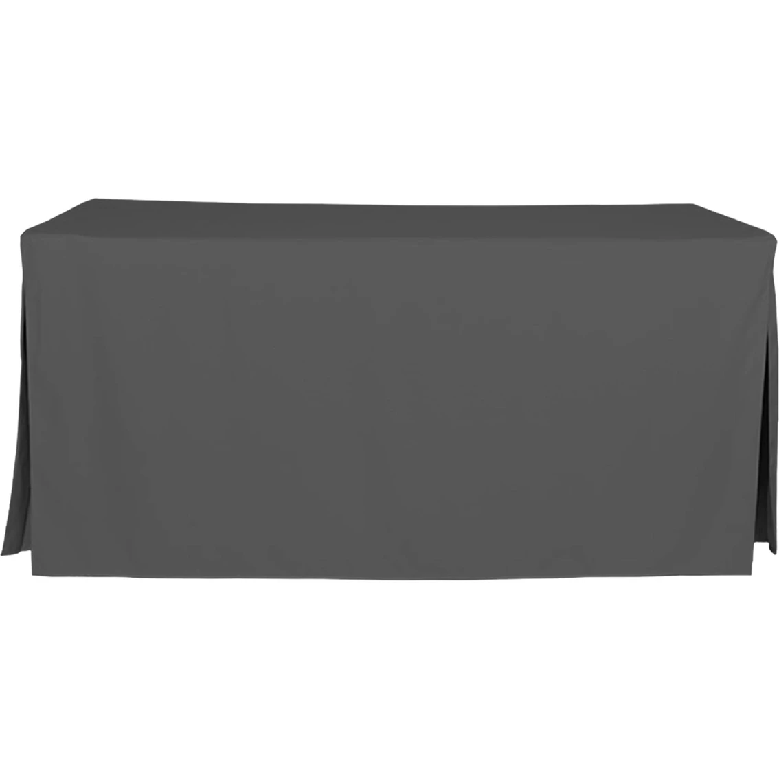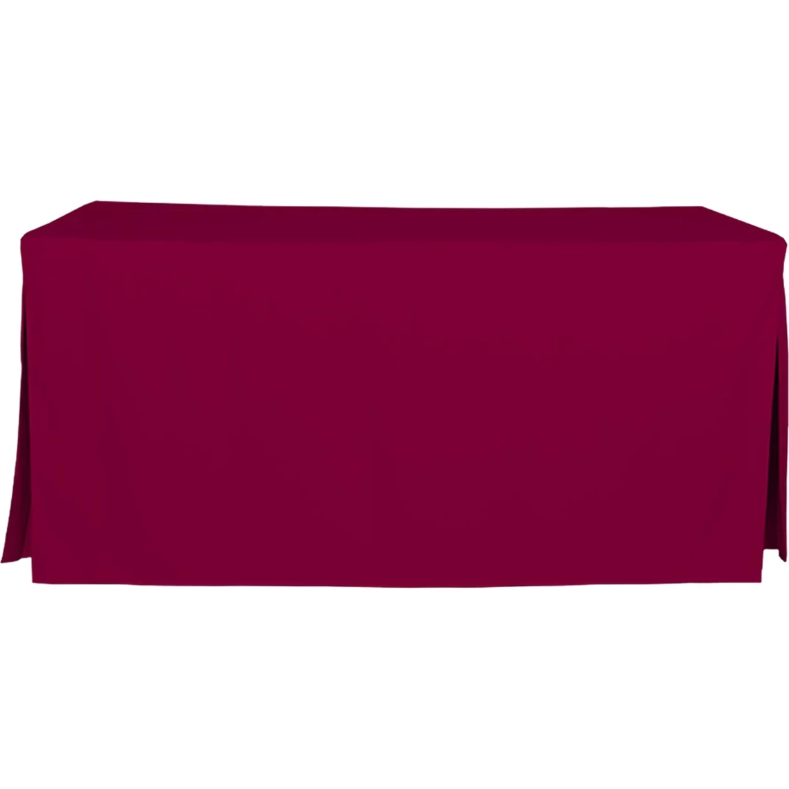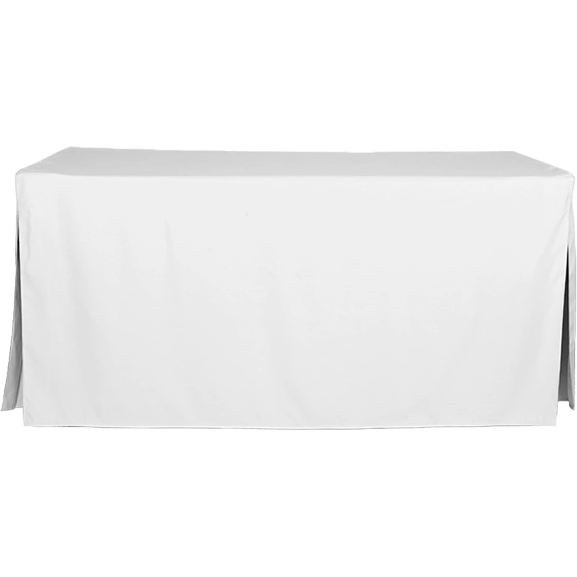 Go from folding table to elegant dining or serving space in seconds with Tablevogue’s pleated 6 ft. table cover. Finished with stitched edges for a custom look, this floor-length cover neatly disguises table legs and makes outdoor entertaining or buffet-style service a breeze. Available in a versatile array of colors. Machine washable. Dimensions: 30 in. W x 72 in. L. 100% polyester. Model: 1C22246.